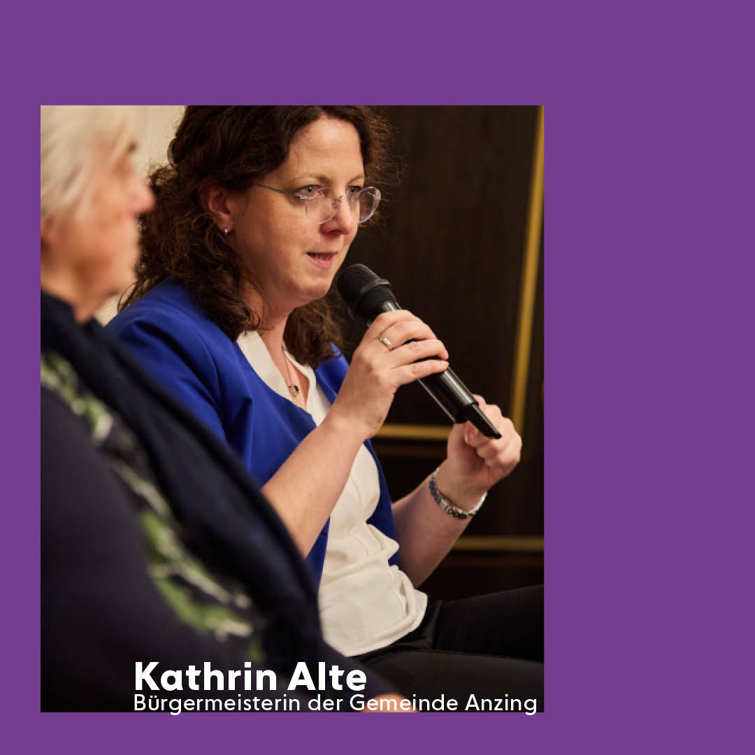 Kathrin Alte ist Bürgermeisterin der Gemeinde Anzing und verfügt über langjährige Erfahrung in kommunalen Gremien. Sie setzt sich mit der Initiative „Bavaria ruft“ für eine Stärkung von Frauen in der Kommunalpolitik ein.