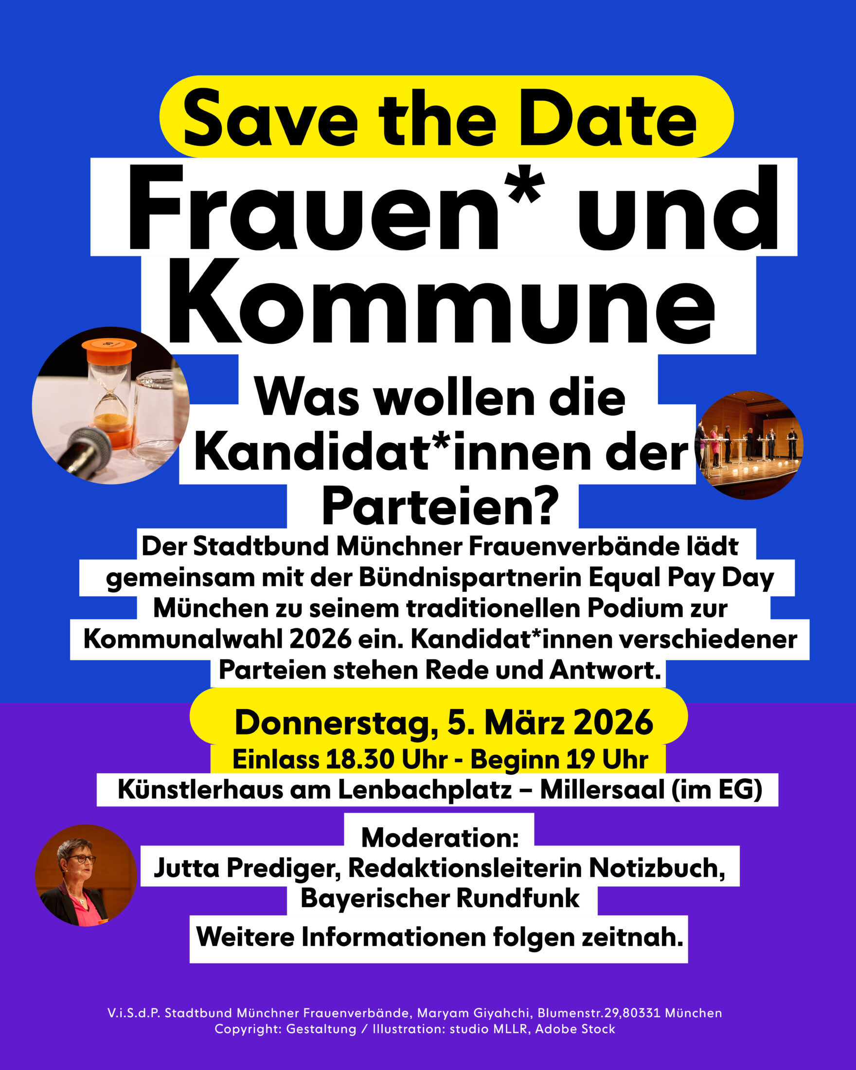Dieser Frage widmet sich das traditionelle Podium des Stadtbundes Münchner Frauenverbände in Kooperation mit der Bündnispartnerin Equal Pay Day München. Vertreter*innen verschiedener Parteien stehen Rede und Antwort und diskutieren politische Perspektiven für unsere Kommune.