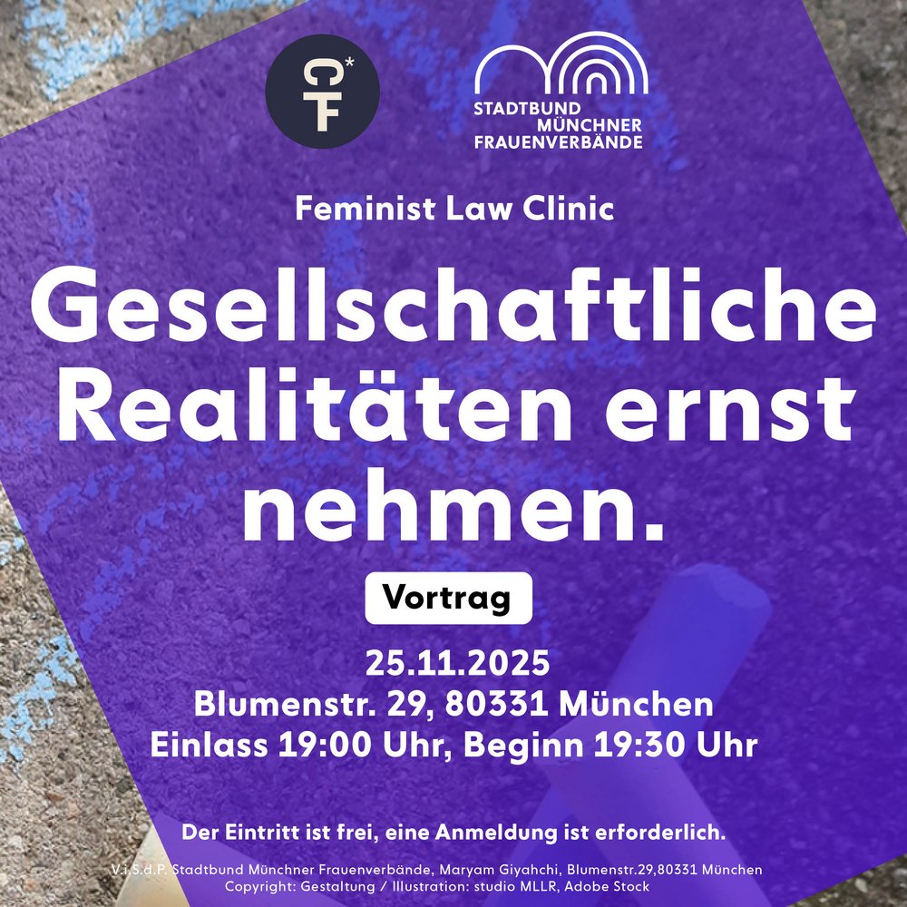 Es freut uns sehr, dass wir gerade an diesem Tag die Feminist Law Clinic München begrüßen, deren Vertreter*innen vorher bei einer Demonstration sprechen.