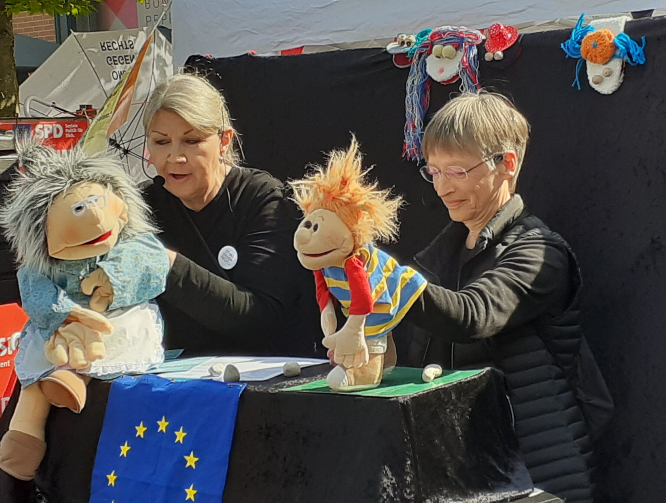 - Wir reden an Infoständen mit Menschen über unsere Arbeit.