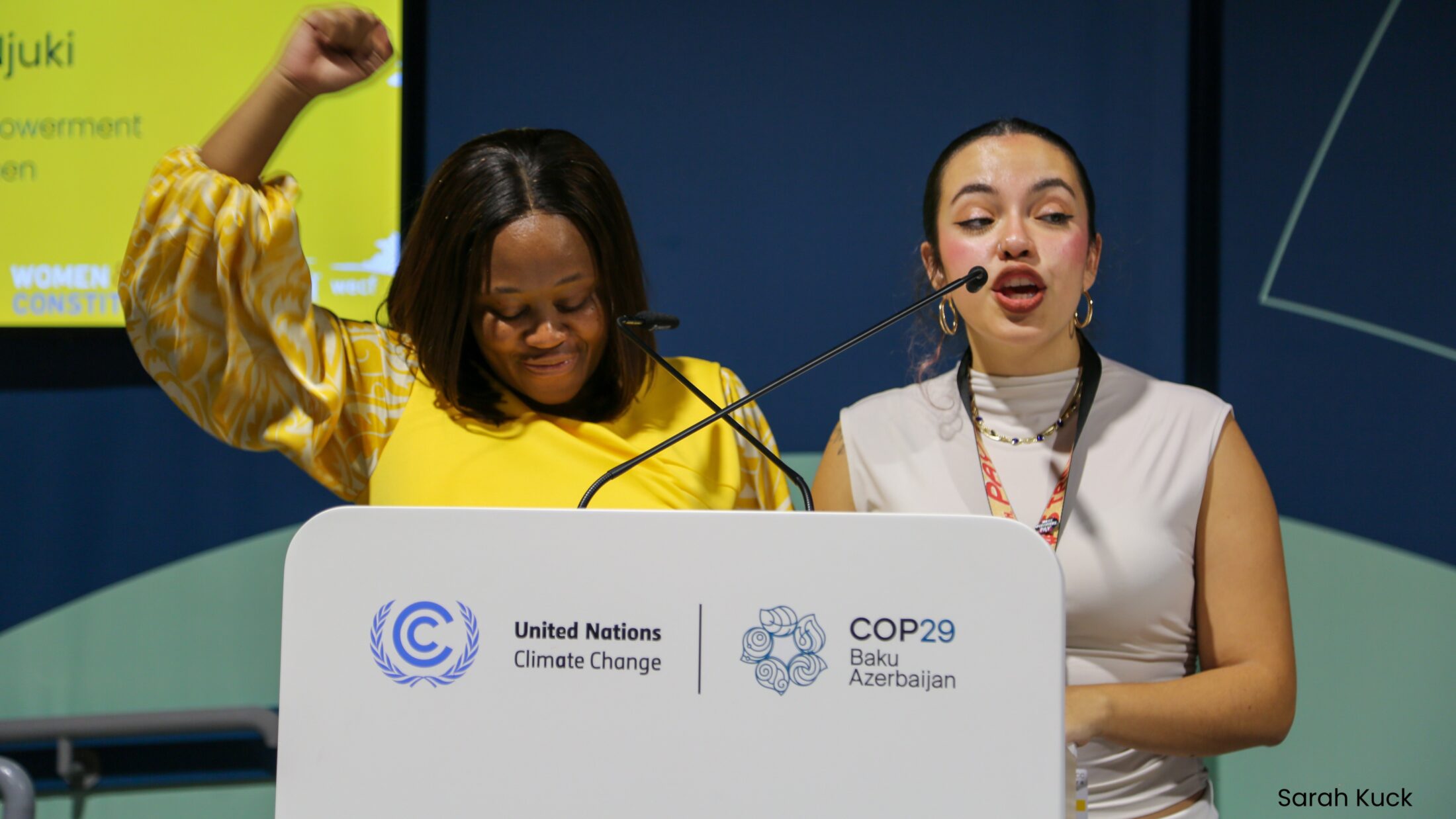 Dort, wo zivilgesellschaftliche Beteiligung eingeschränkt ist oder verwehrt wird, schaffen wir eigene Räume. Durch Side Events, kreative Protestaktionen und Bündnisarbeit bringen wir gemeinsam mit Partner:innen aus der Gender- und Klimabewegung die Forderungen der Zivilgesellschaft an die Orte politischer Entscheidung.